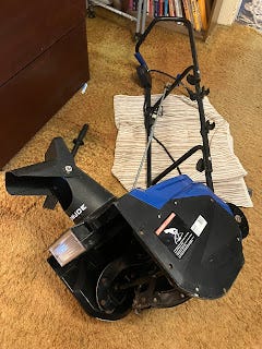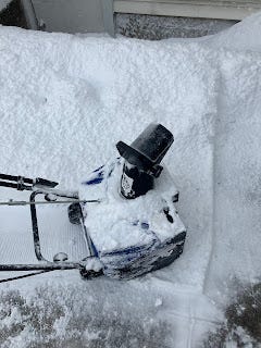 So I wrote this--again, perhaps ironically--with ice on my back, but my neighbor promised he’d take care of the snow removal. He has a normal sized, gas engine powered snowblower, but it still doesn’t sit right by me. I want to do stuff myself! But sometimes, I suppose, I have to admit I can’t anymore.